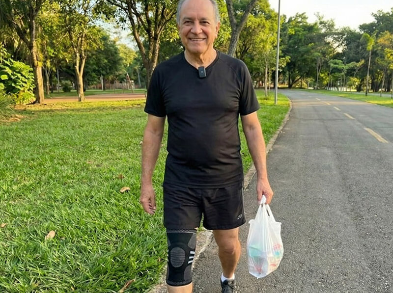 Ele também sofria com artrose e inchaço nos joelhos — lesões antigas de esporte.